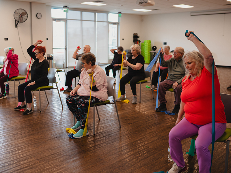 Besides the physical benefits, Delinda celebrates the social and emotional benefits, as well. “I think people stay at home and get lonely, depressed, with anxiety issues… and then you come into a group and exercise, and it becomes a way to manage the depression,” Delinda said she has managed her own depression and anxiety through physical activity for many years. “And, you make friends who look forward to seeing you!” she said. It’s those relationships that help fight the feeling of isolation for many who do not have family close by or who have lost their partners, and can be the motivation to show up at the class every day and achieve physical results.